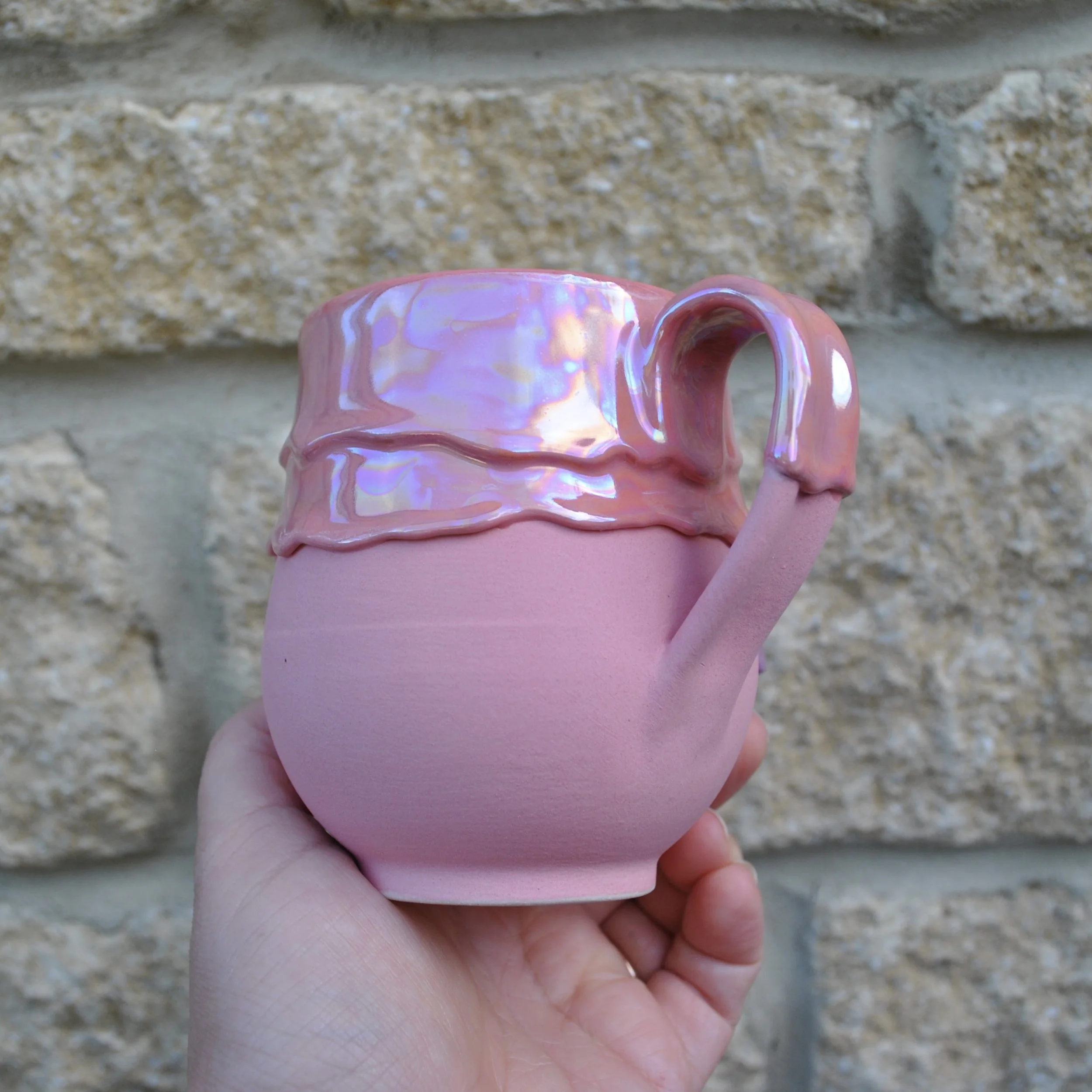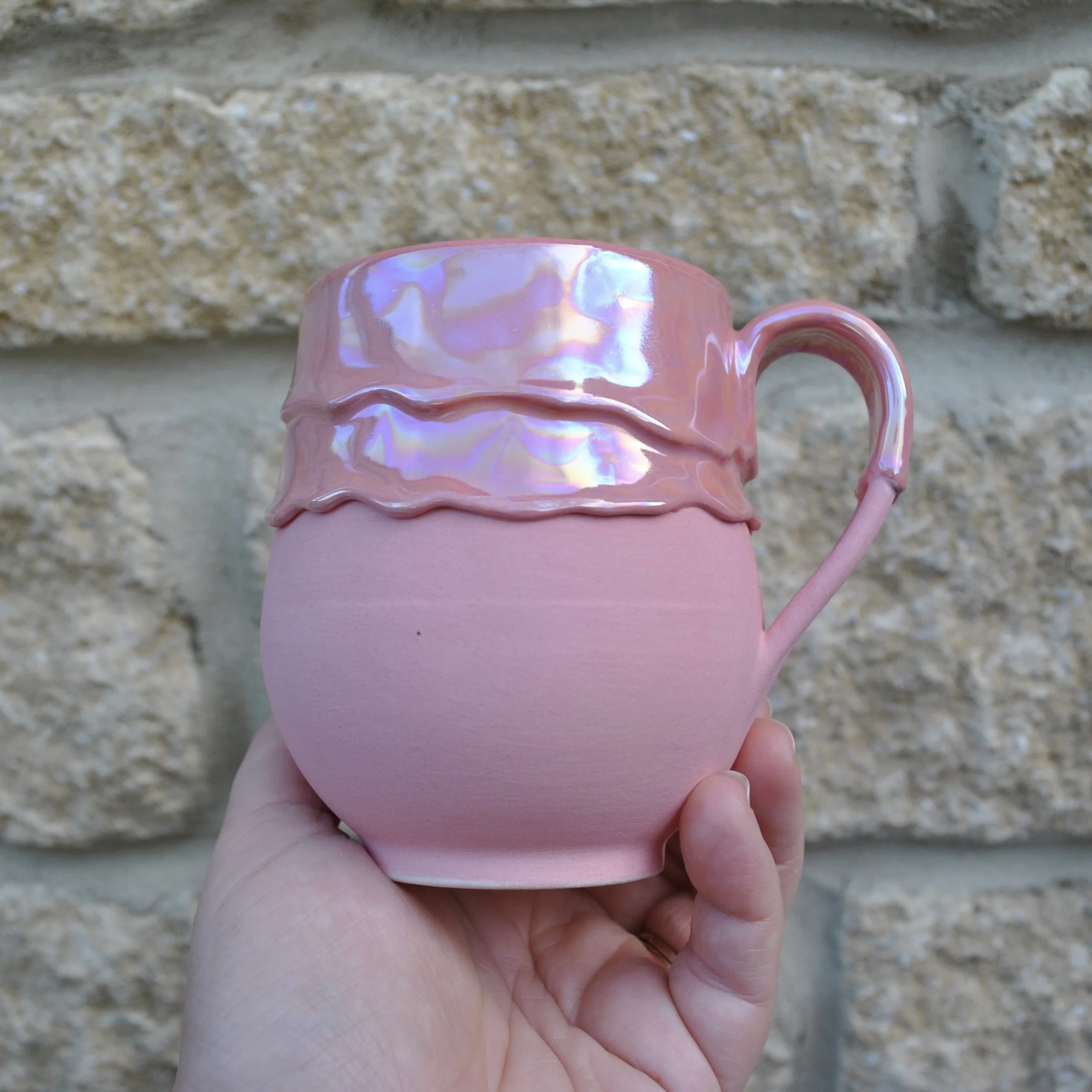 As they are made by a person not a mould in a factory so they will have unique attributes but that’s why we love them. This mug is a delicate sort so I would recommend washing it by hand to keep the colours looking glorious but it can go into the dishwasher occasionally. But it will not like being microwaved so please don't. The unglazed bottom is safe to wash as well.