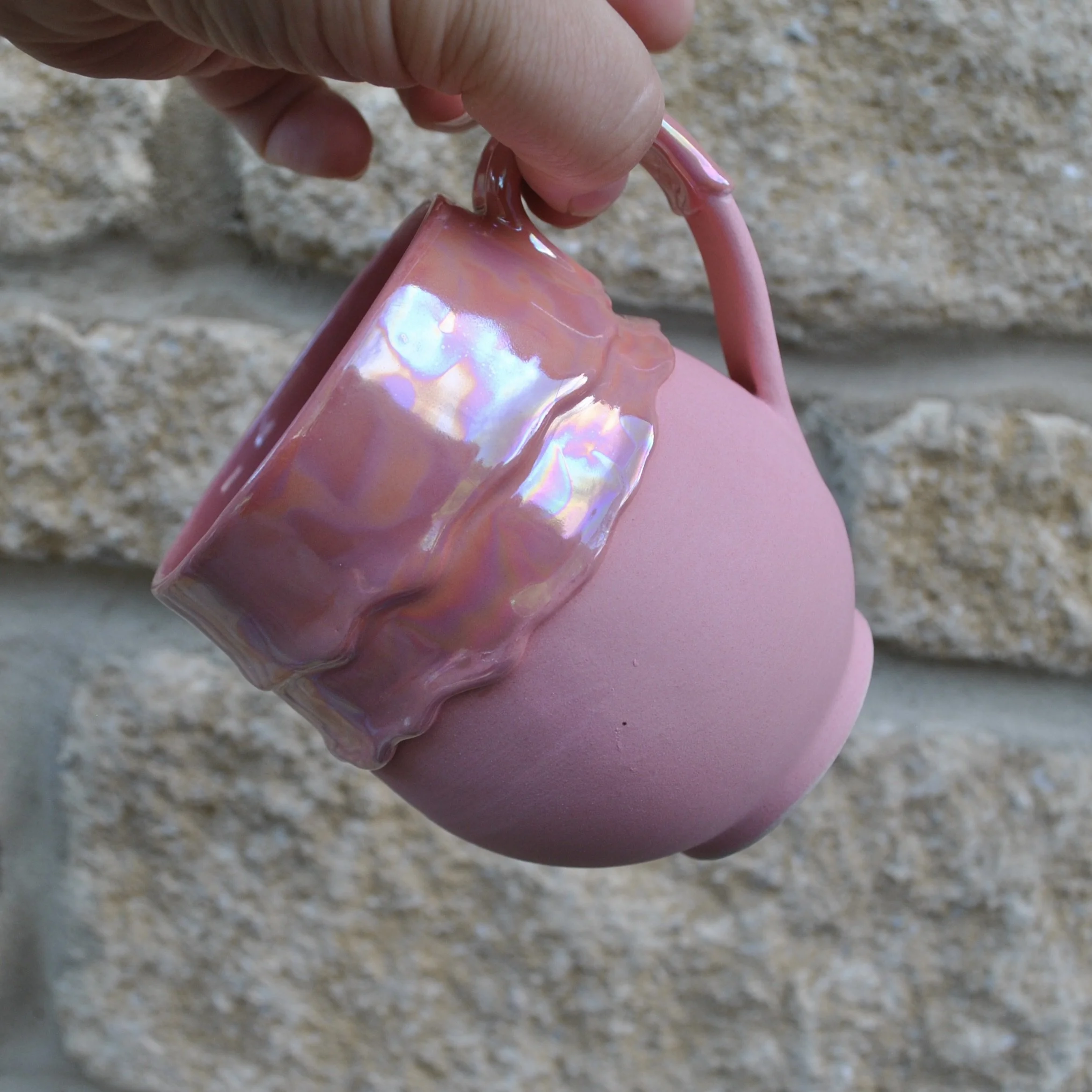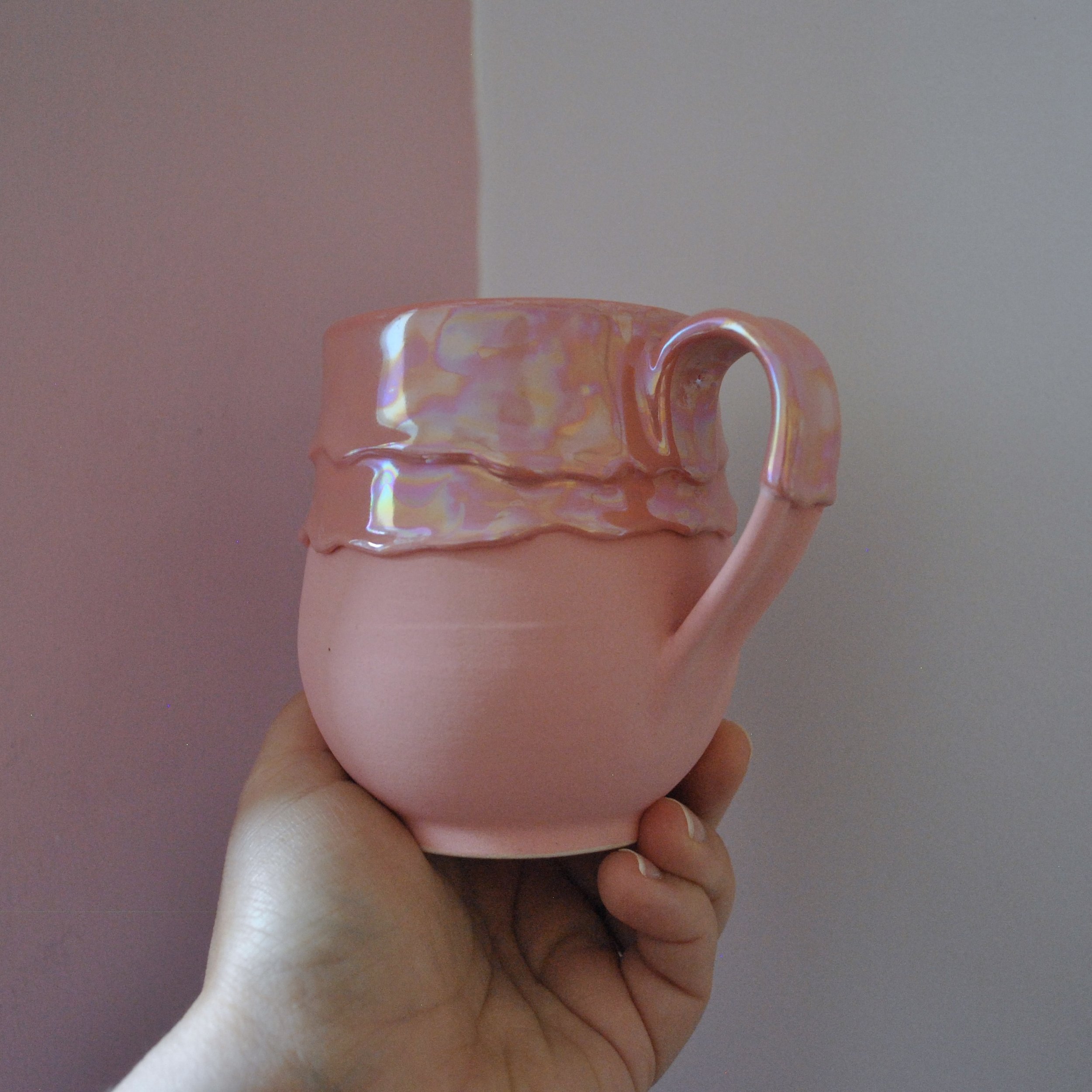 I endeavour to take photos in daylight to get the closest colour match but computer monitors, tablets and mobile phone screens may alter the colour slightly from reality so please take this into account when ordering. The iridescent glaze is especially hard to capture!