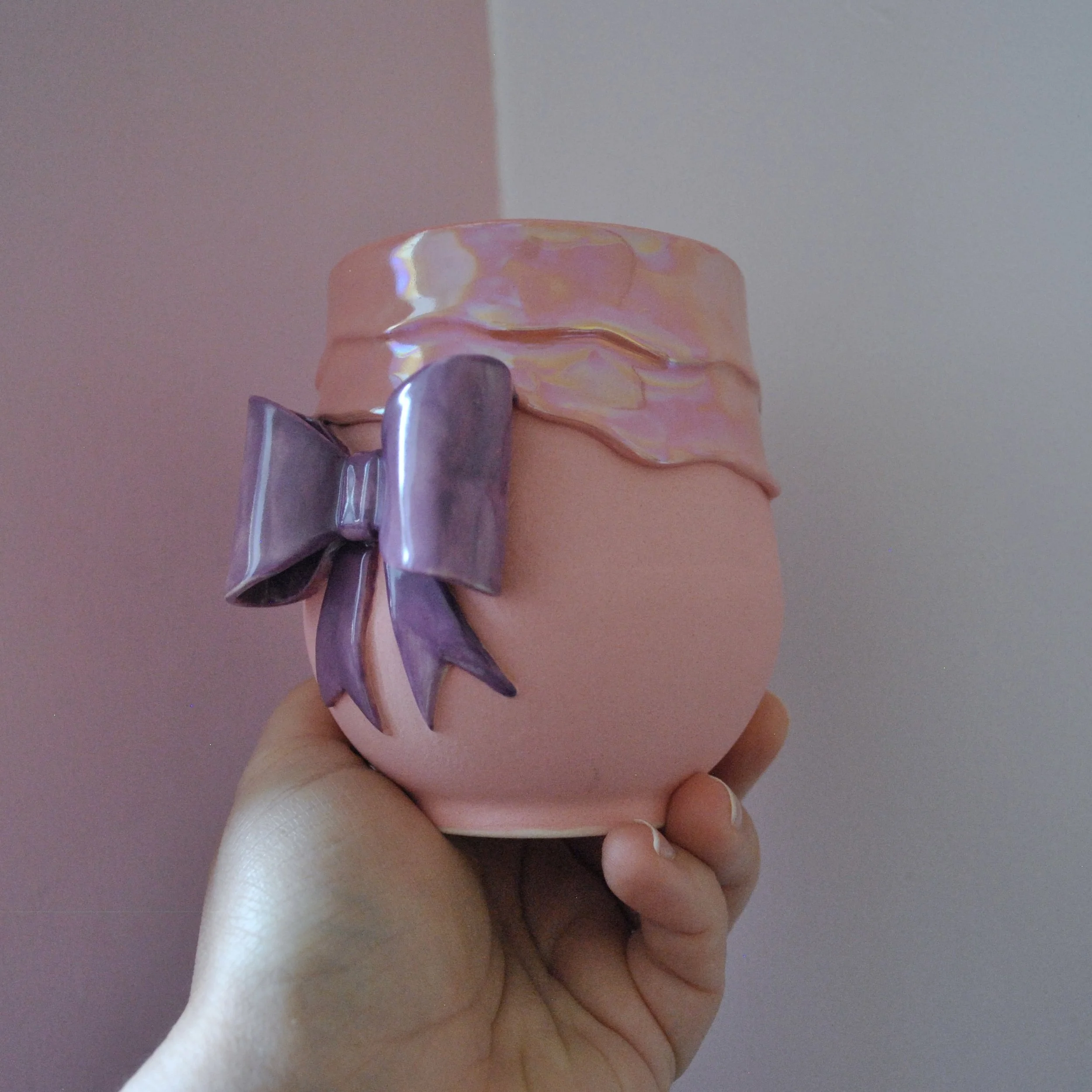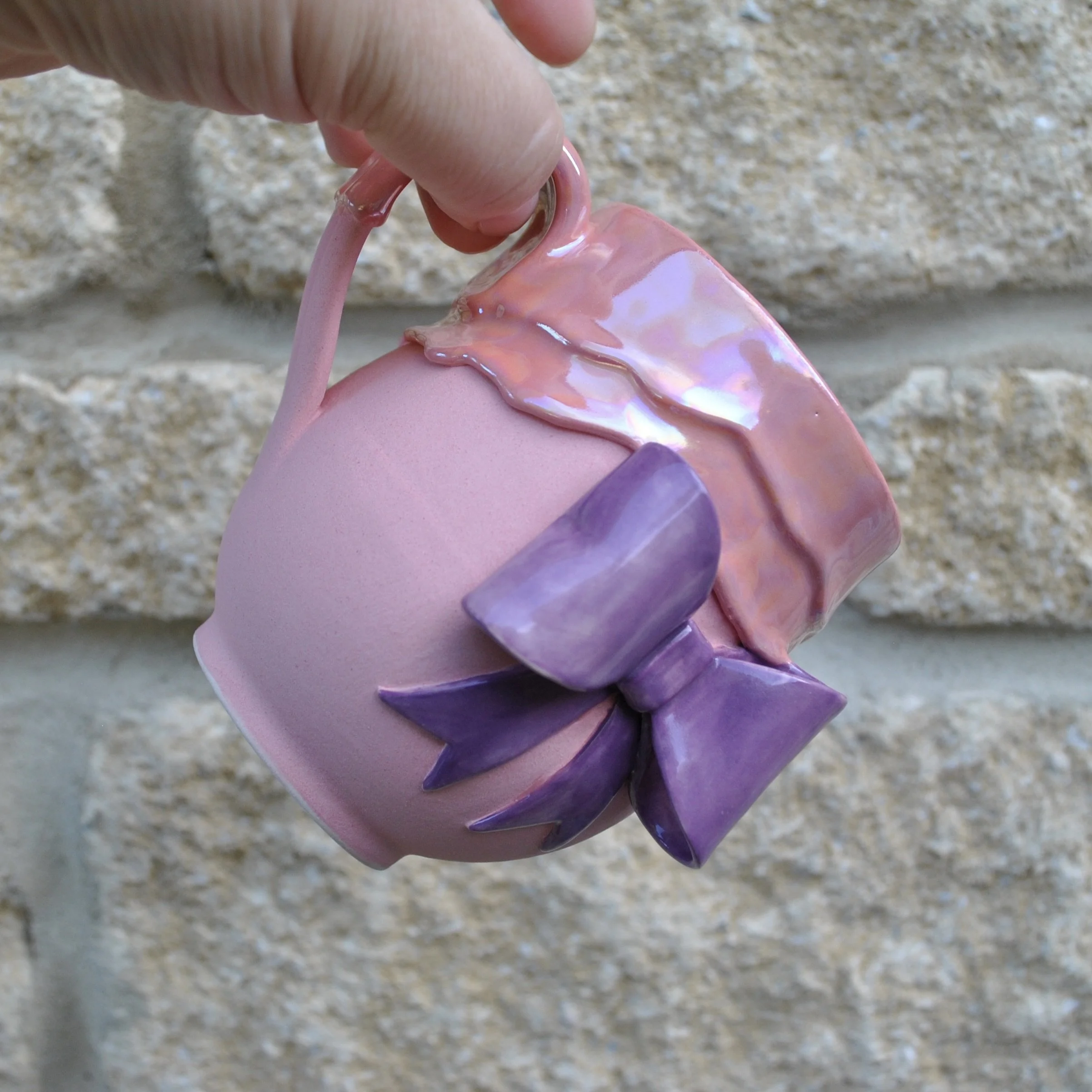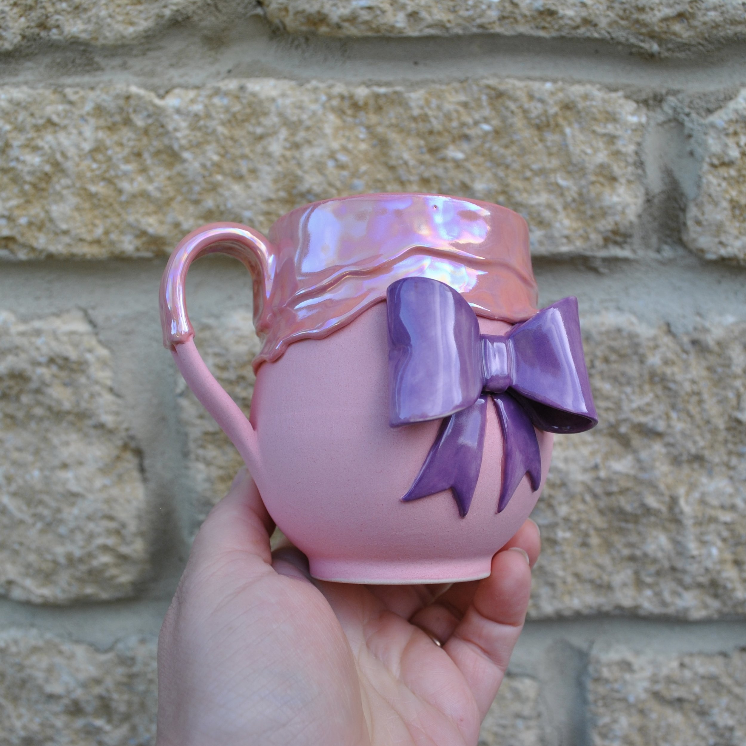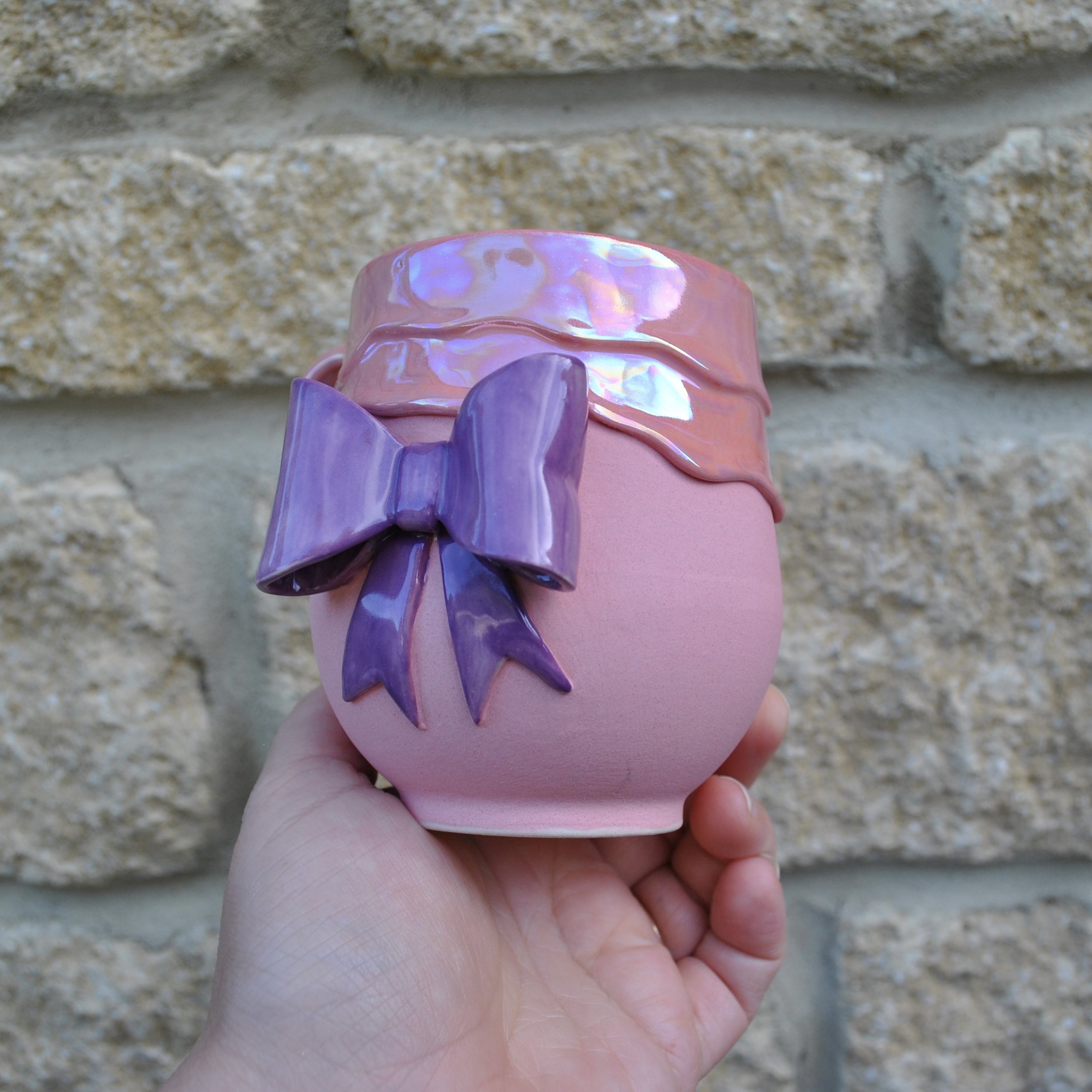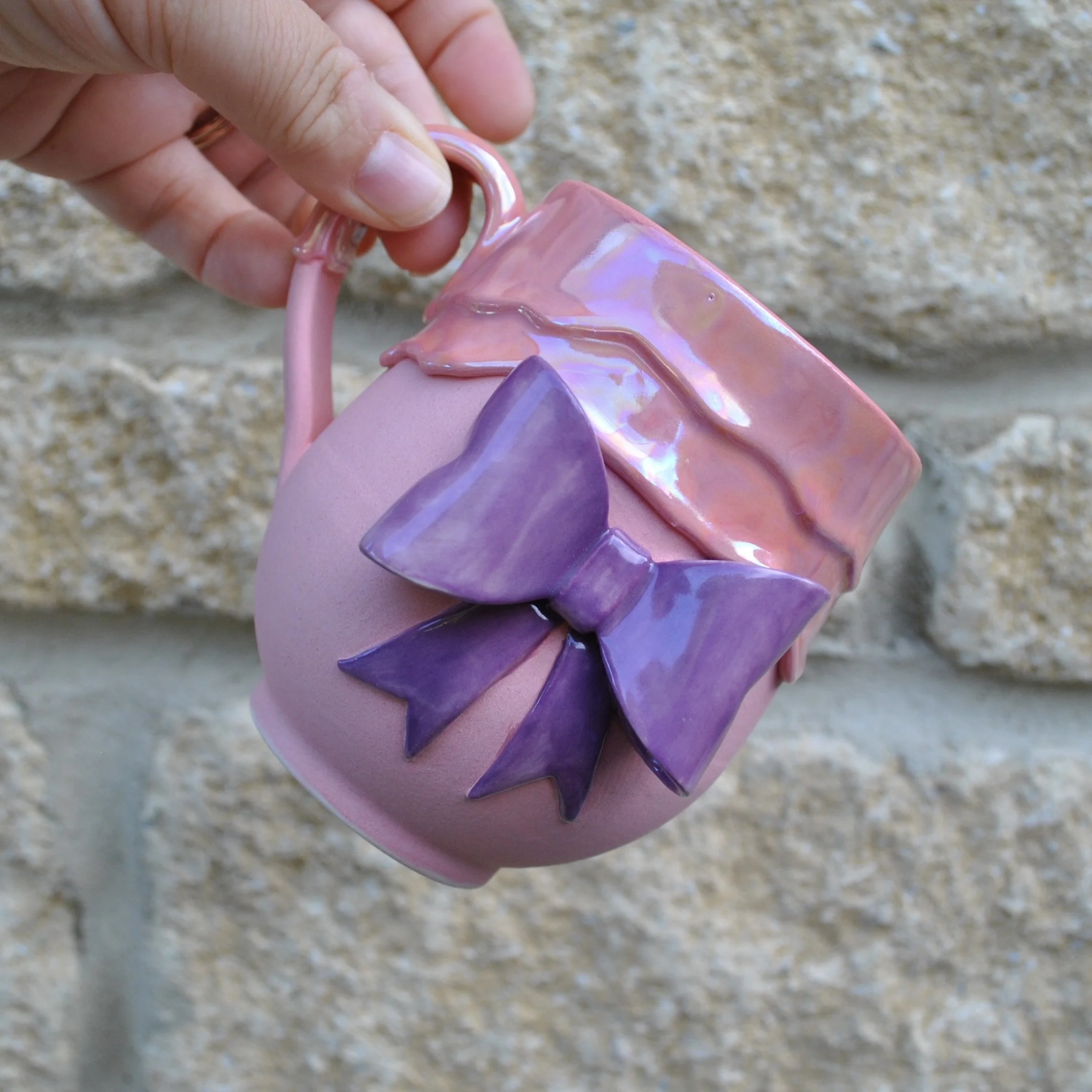 With magical dripping glaze, with its handmade bow, this mug is just what you need for any occasion!